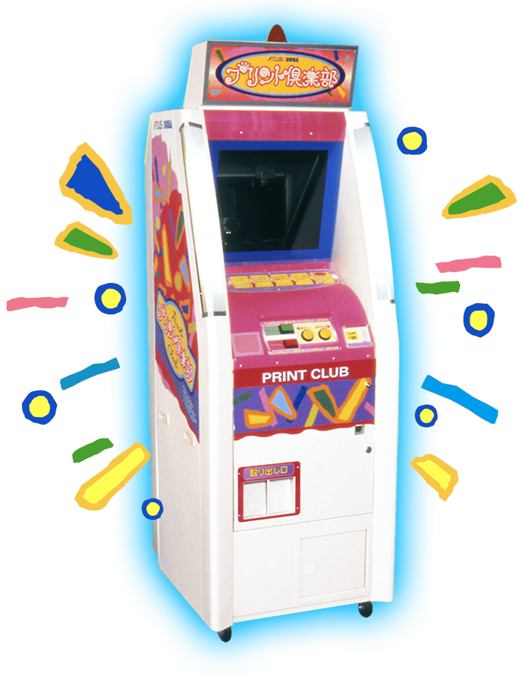 プリントシール機の元祖、『プリント倶楽部』発売。友人同士で一緒に撮影したシールを交換しあい、プリントシールを貼り集めたシール帳(プリ帳)を持った若い女性たちで連日大盛況に。「プリクラ」の愛称はプリントシール機の代名詞となり、アミューズメント施設の一角を成す1ジャンルとして定着。その後は他社からも多様な機種が登場。美白機能やスマートフォンとの連携など、進化を続けている。