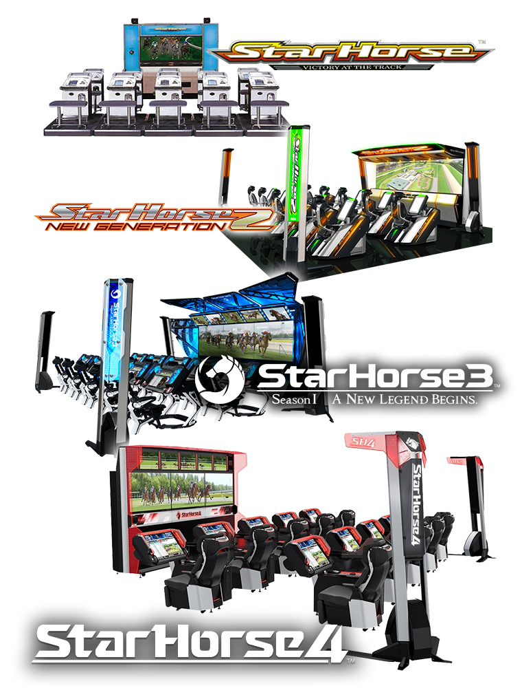 ベットゲーム&オーナーゲームという2つの遊びが体験できる競馬メダルゲームの金字塔。大画面のメインモニタで展開する大迫力のレース映像、杉本清氏の実況、落ち着いたサテライト空間など“本物”へのこだわりが競馬ファンの心を掴んだ。2017年にはスマ-トフォン向けアプリゲーム『StarHorsePocket』が配信開始。稼働開始から約20年経った現在『StarHorse4』がゲームセンターで絶賛稼働中。