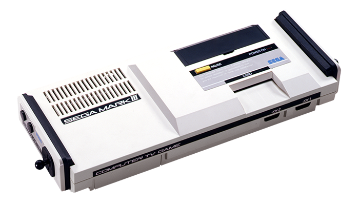 アーケードの技術を採用し、大幅に強化されたセガ3代目の家庭用ゲーム機。従来機と上位互換性を保ちつつ、グラフィック機能等が強化。3-DグラスやFMサウンドユニット等の周辺機器も発売された。定価15,000円