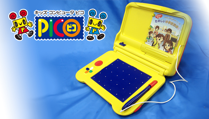 タッチペンによる操作、絵本状のページが付いたソフトウェア、テレビ画面と絵本の連動遊び、テレビ画面を利用したお絵かき遊びなどができる、高性能なお子さま向けの電子知育玩具。