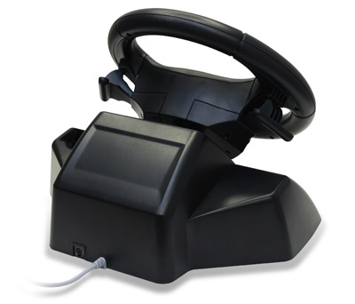 レースゲームのプレイに最適なステアリング型コントローラ。