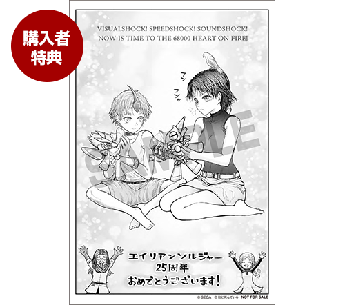 記念として、今回アジアエディションを購入された方全員に、殆ど死んでいる先生描き下ろし「エイリアンソルジャー25周年おめでとう」ポストカードを同封させていただきます。